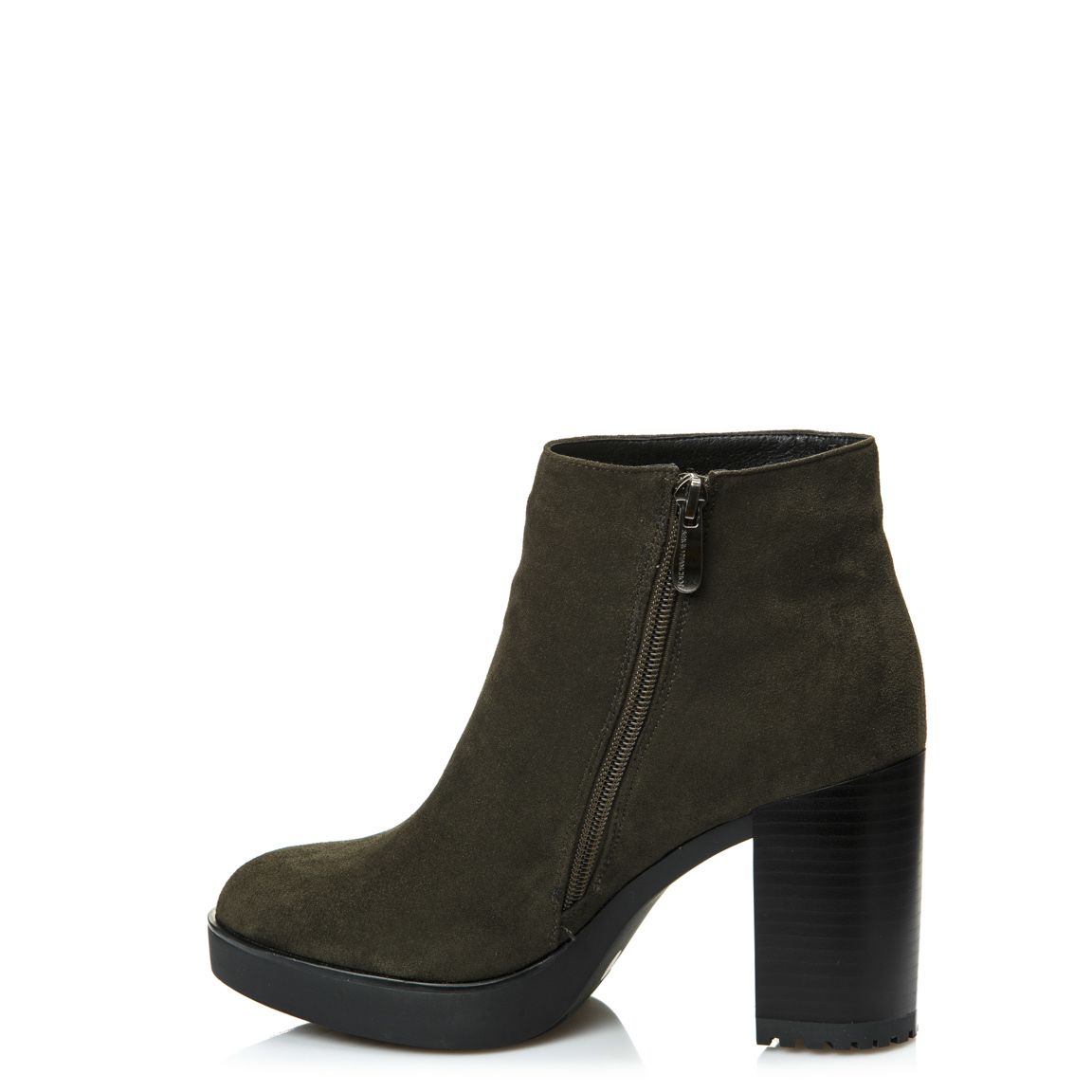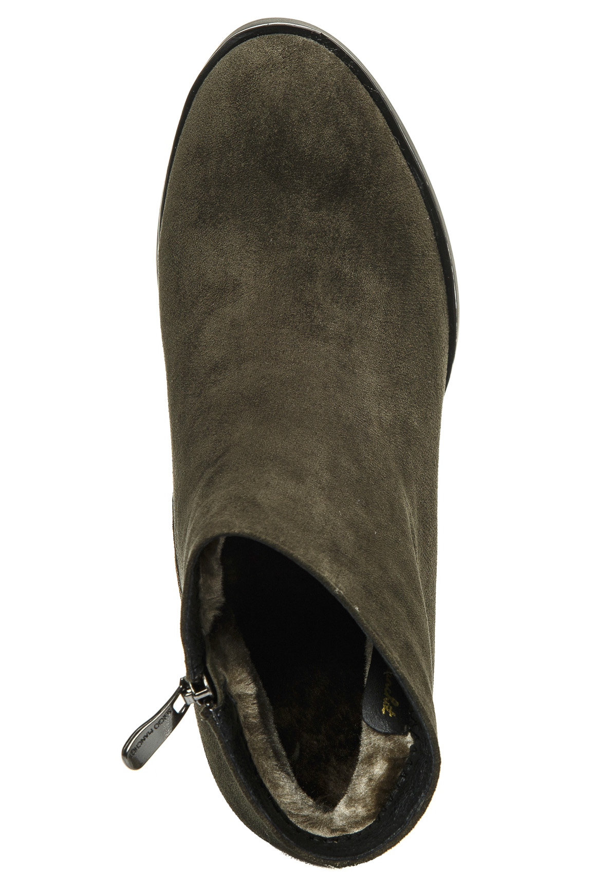 Женские зимние ботильоны Sergio Manchot - отличный вариант, чтобы дополнить свой образ в это холодное время года. Это стильная и практичная модель, которая подойдет для повседневной носки как на работе в офисе, так и на длительных прогулках, а высокий и устойчивый каблук заметно удлинит ноги. Верх этой модели выполнен из искусственной замши хаки цвета, внутренний подклад из искусственного меха гарантирует тепло вашим ногам на протяжении всего зимнего сезона.
