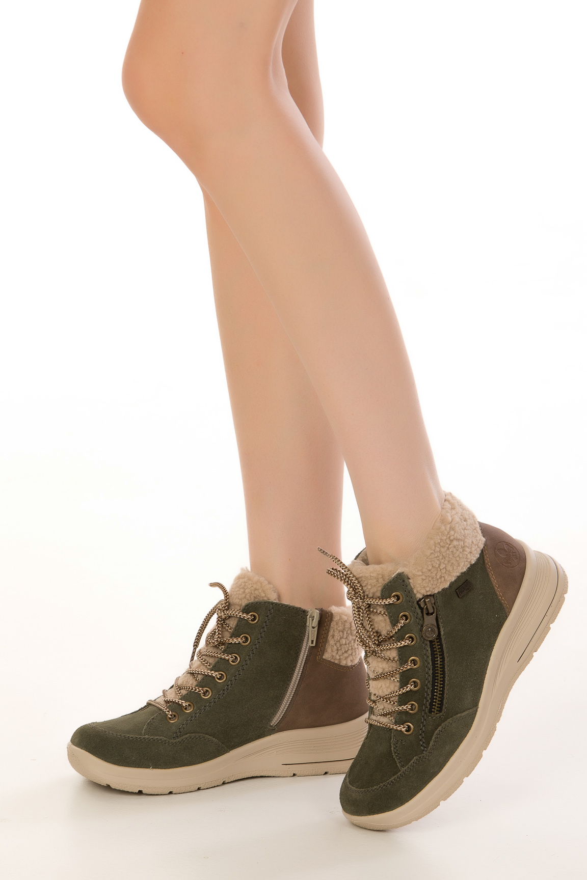 зимние ботинки RIEKER - отличный вариант, чтобы дополнить свой образ в это холодное время года. Это стильная и практичная модель, которая подойдет для повседневной носки. Верх этой модели выполнен из натуральной замши + экокожа зеленого цвета, внутренний подклад из искусственной шерсти гарантирует тепло вашим ногам на протяжении всего зимнего сезона.