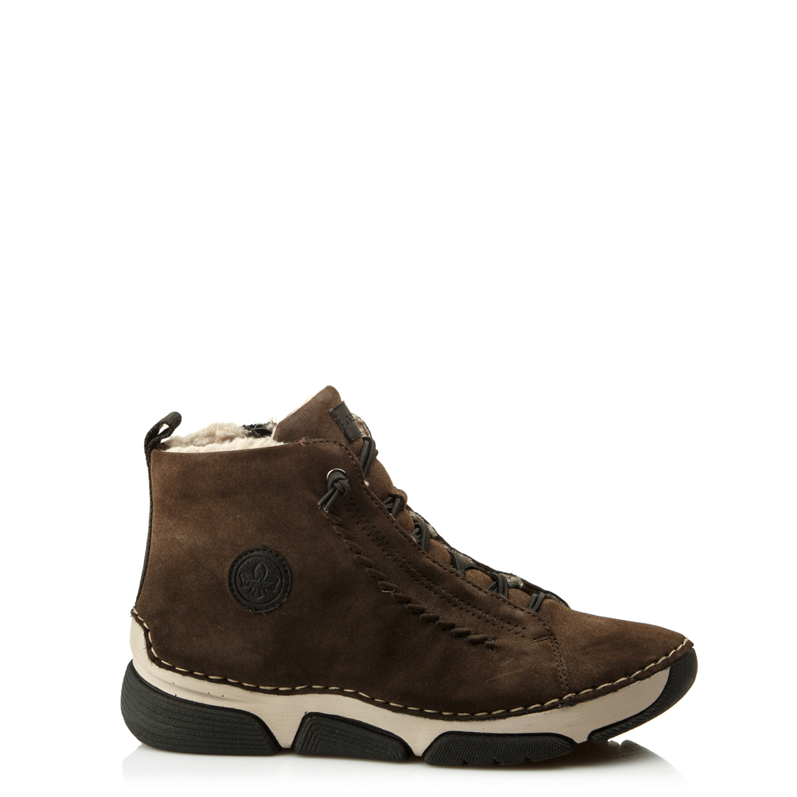 зимние ботинки RIEKER - отличный вариант, чтобы дополнить свой образ в это холодное время года. Это стильная и практичная модель, которая подойдет для повседневной носки. Верх этой модели выполнен из текстиля коричневого цвета, внутренний подклад из искусственной шерсти гарантирует тепло вашим ногам на протяжении всего зимнего сезона.